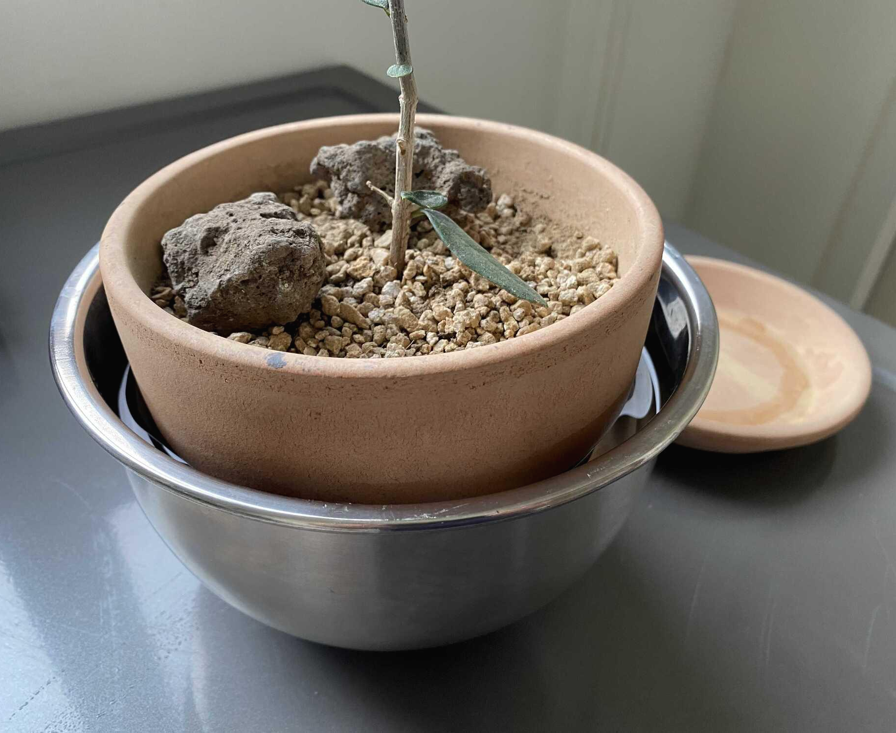 흙이 딱딱하게 굳어버린 올리브 나무 화분 저면관수 본문