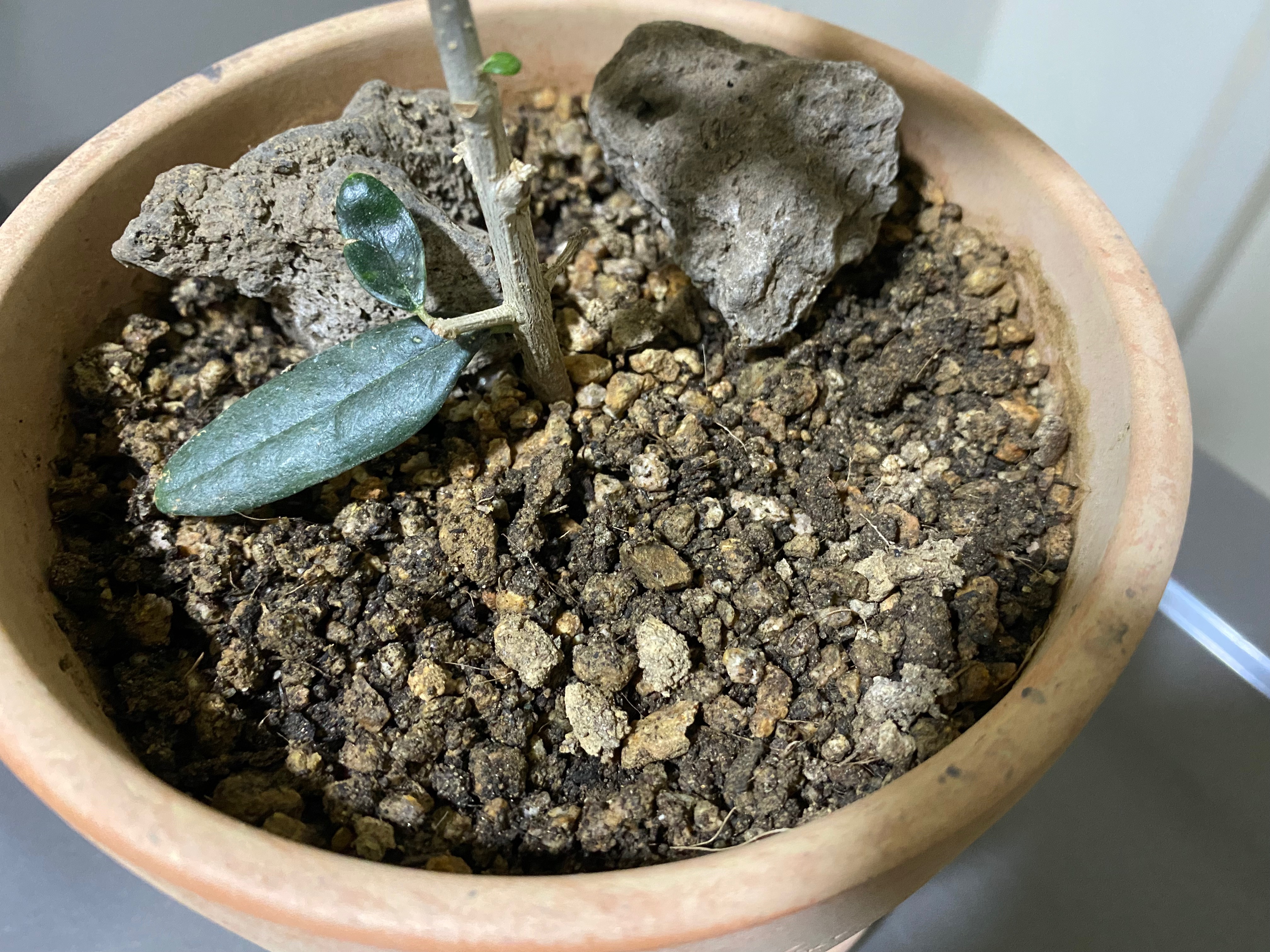 봄이 시작할 때쯤 올리브 나무를 선물받았습니다. 아마도 기존의 올리브 나무에서 가지를 잘라 삽목한 것 같았습니다. 원래 작은 비닐 포트에 심겨 있었는데, 4월 중순쯤 토분을 구해서 옮겨 심었습니다.