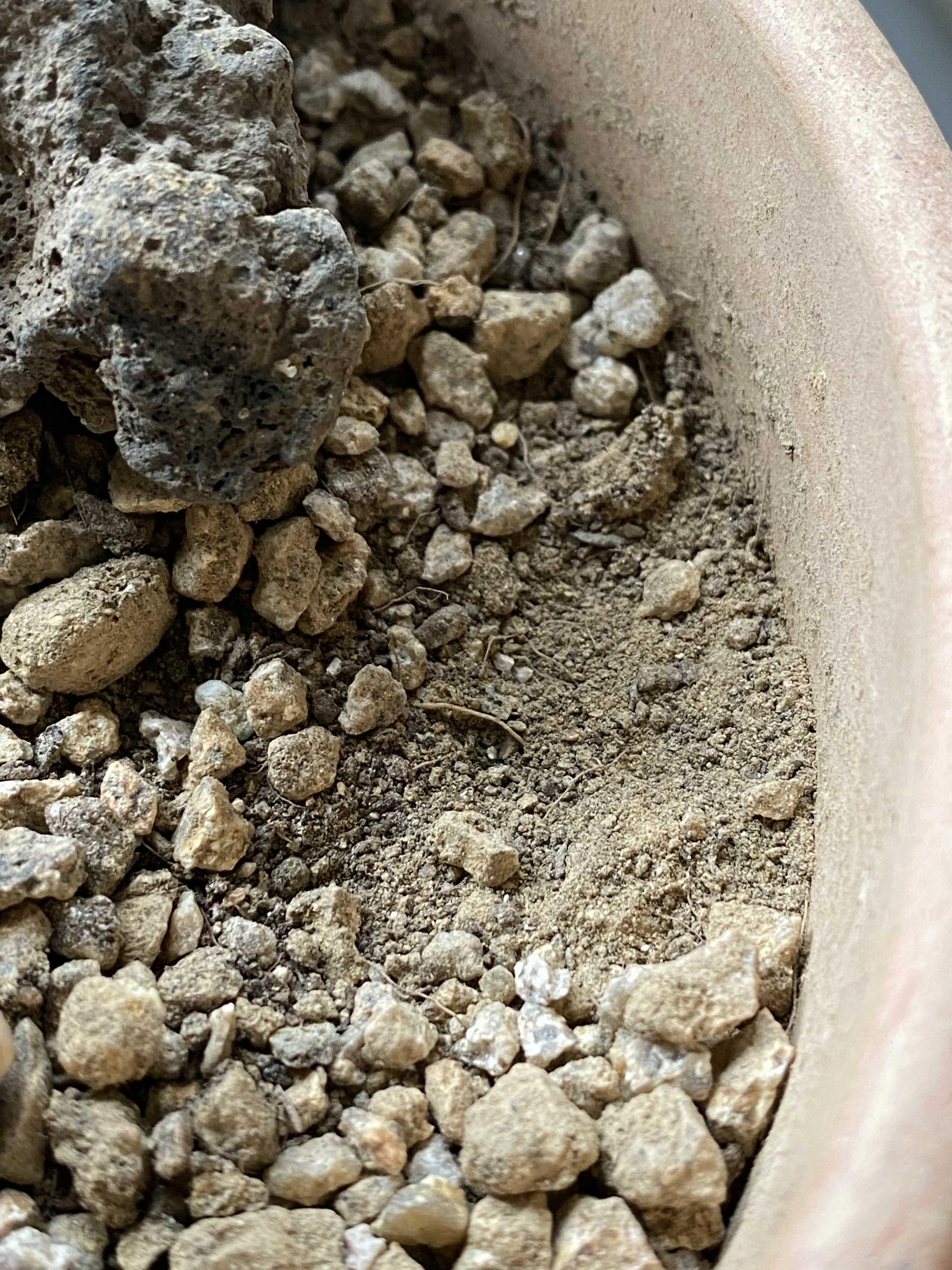 그런데 언젠가부터 물을 줄 때 흙이 너무 딱딱하다는 느낌이 들었습니다. 흙 표면은 꼭 진흙을 반죽해서 햇볕에 말린 것 같았고, 이쑤시개로 표토를 긁어 보면 마사토 알갱이 여럿이 뭉쳐 딱딱하게 굳어 있었습니다. 물을 조금 더 자주 주어야 했던 건지, 뿌리에 비해 화분이 너무 큰 건지, 흙이 나쁜 건지, 원인은 알 수 없지만 어쨌든 식물에 좋을 것 같지는 않아 무슨 수라도 써야겠다고 생각하고 있었습니다.