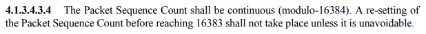 | Packet Sequence Count 필드 값 | 16380 | 16381 | 16382 | 16383 | 0 | 1 | 2 | 3 |
